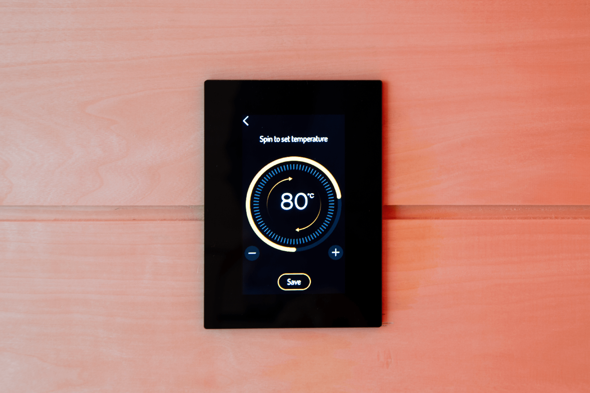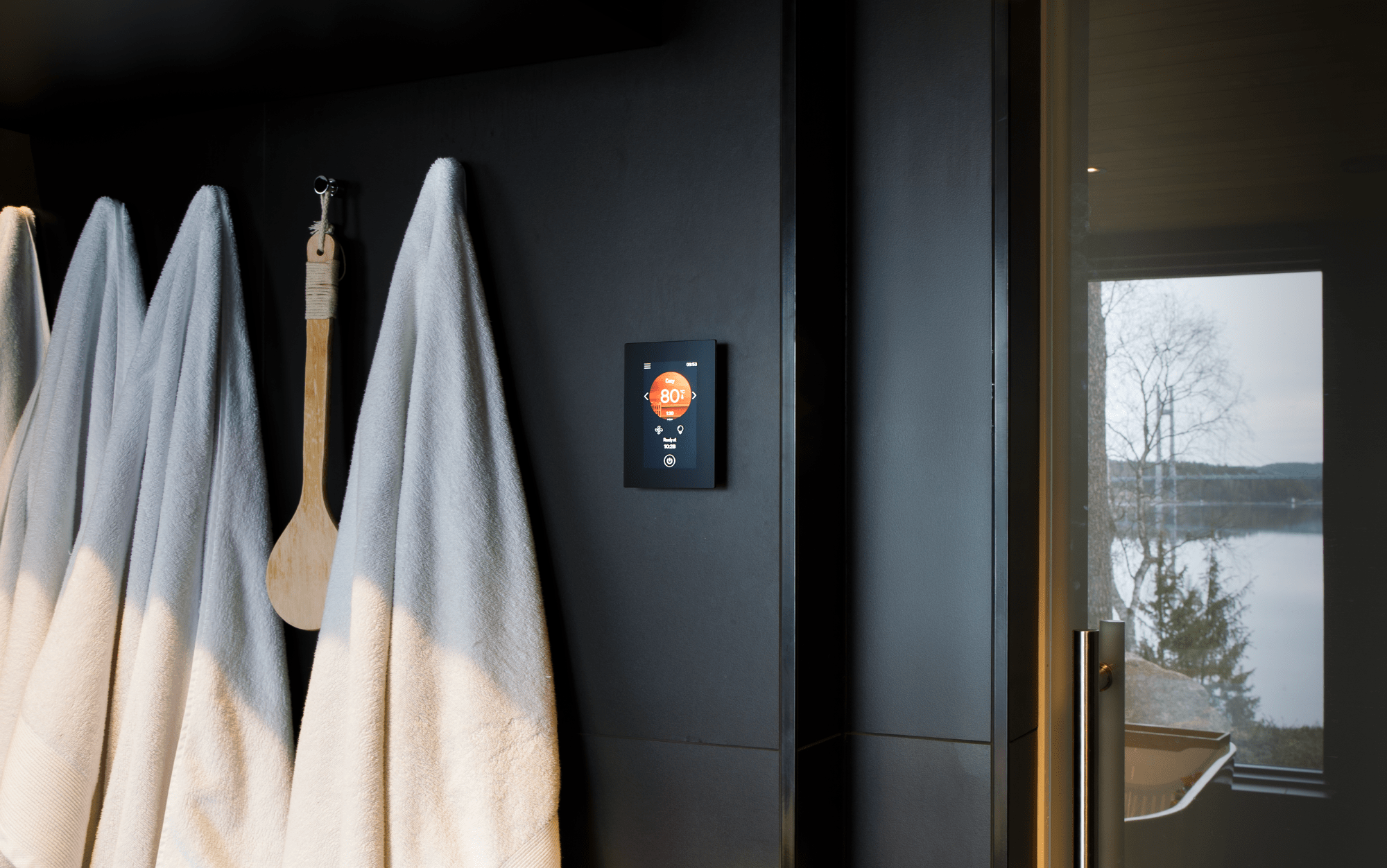 Das schlanke Bedienteil lässt sich innerhalb oder außerhalb der Sauna montieren und bleibt selbst in feuchter Umgebung zuverlässig. Je nach Modell kann auch die Leistungseinheit im Saunaraum installiert werden - eine Besonderheit, die vor allem bei Außensaunen neue Freiheiten schafft.